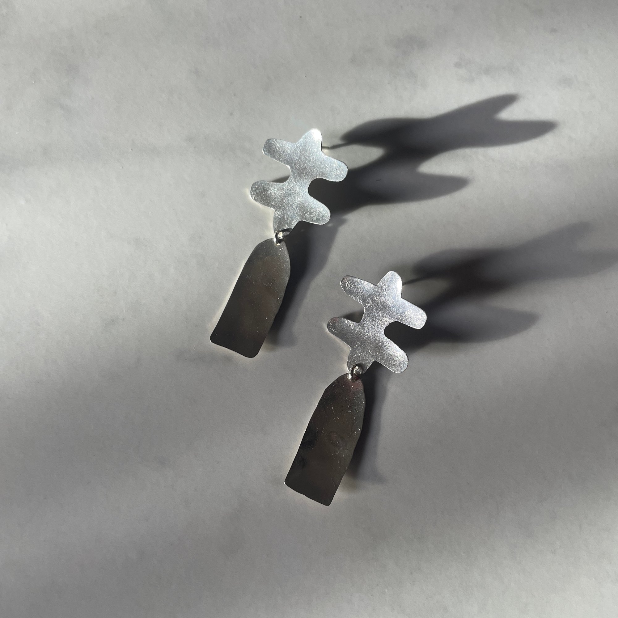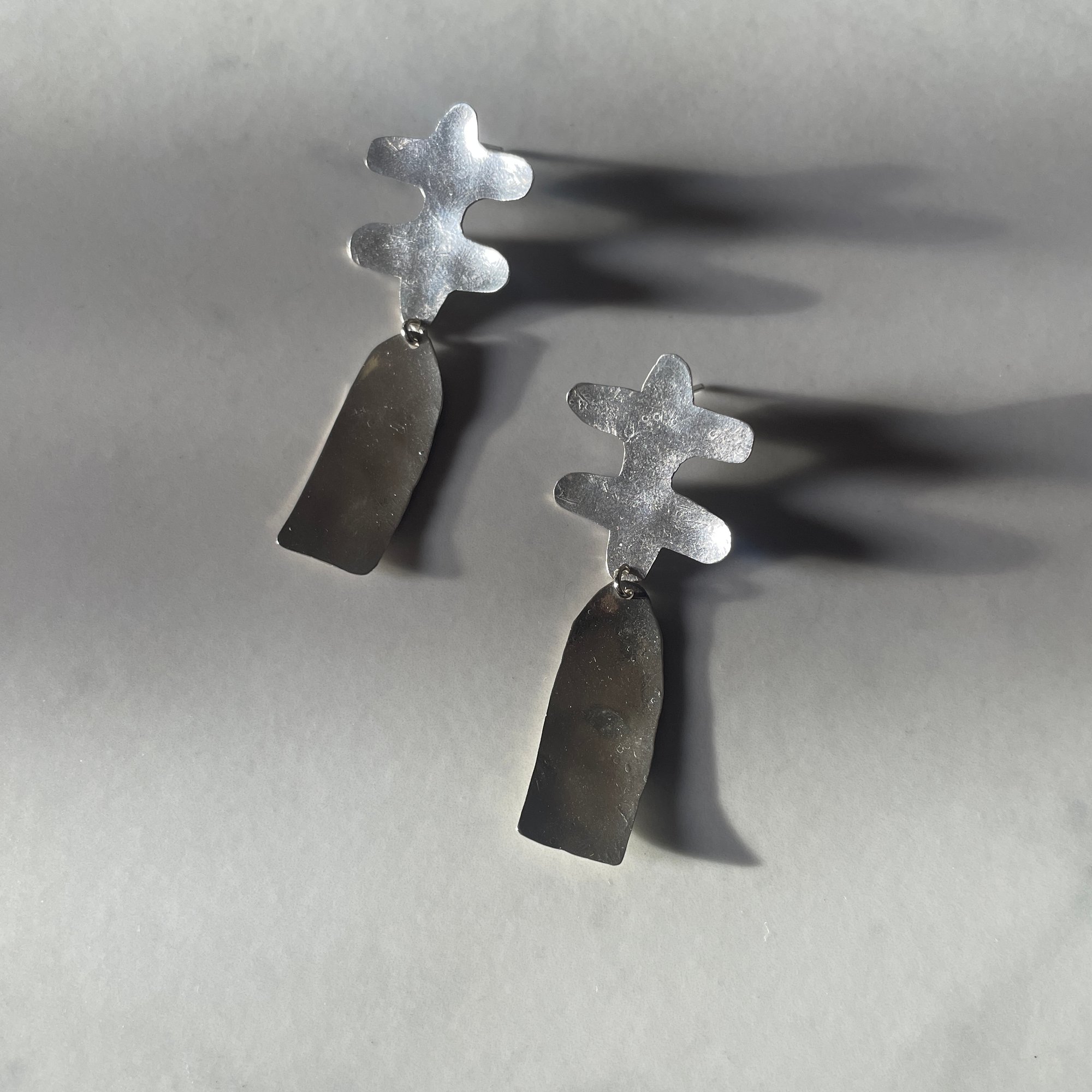 hand fabricated and textured sterling silver earrings