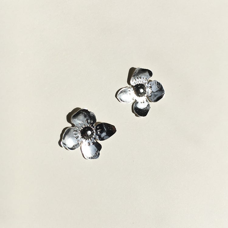 hand fabricated and textured sterling silver botanical earrings