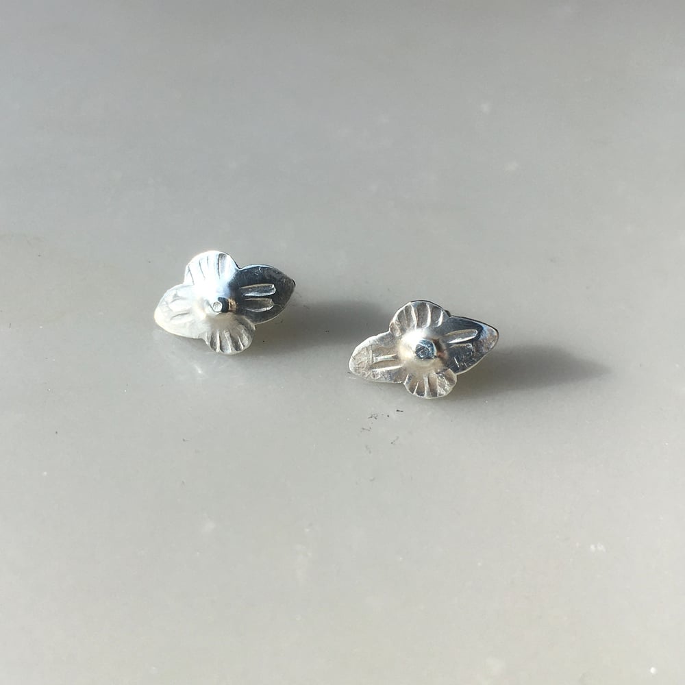 hand fabricated sterling silver earrings textured with handmade stamps