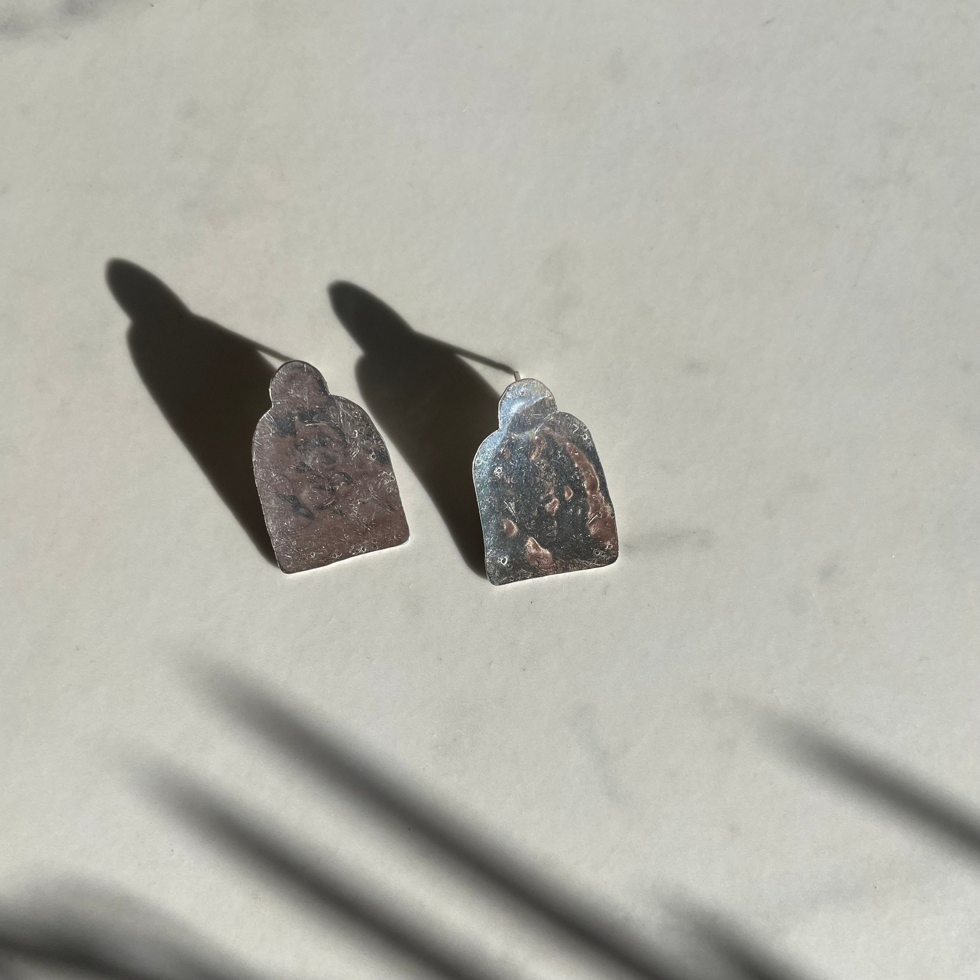 hand fabricated and textured sterling silver earrings