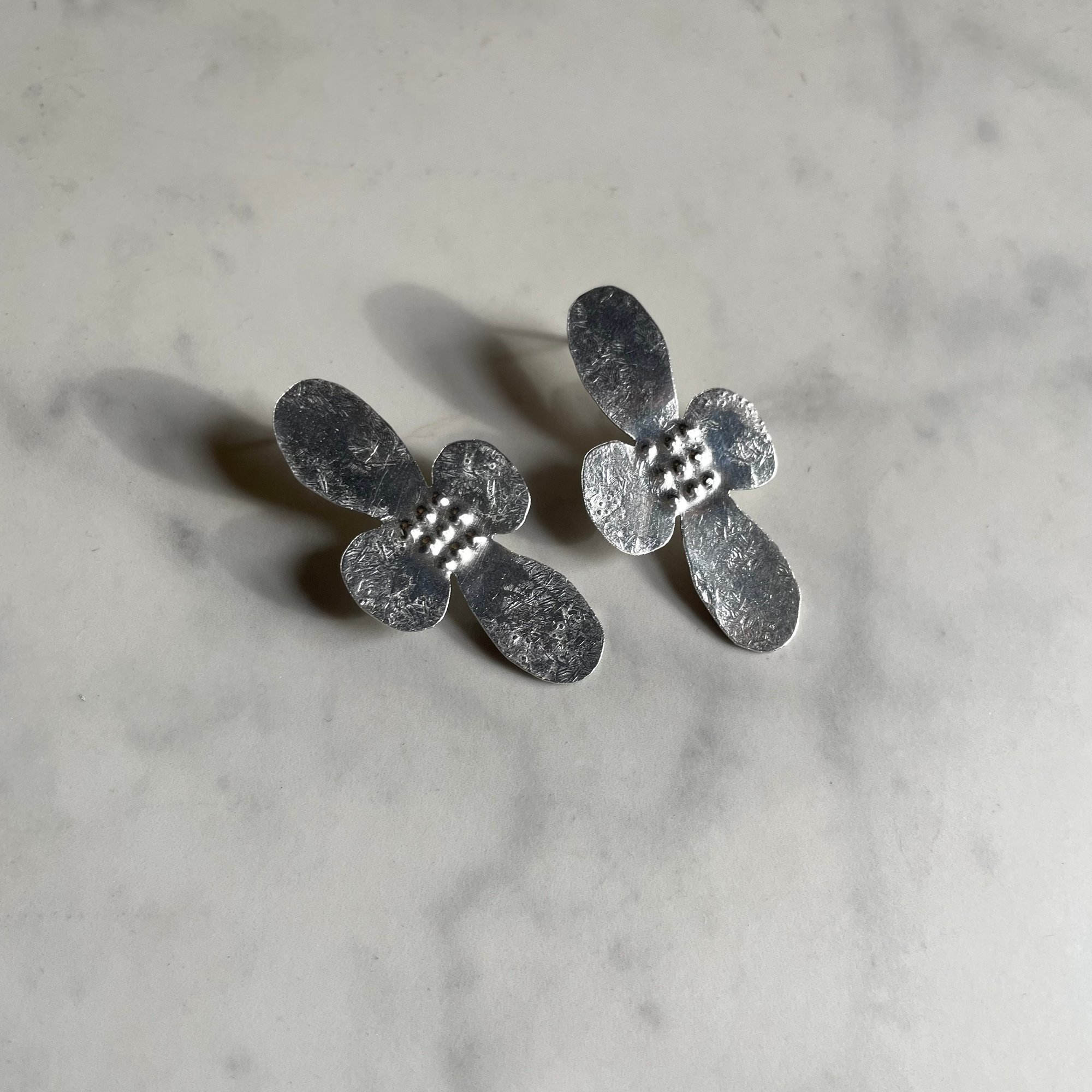 hand fabricated and textured earrings; choose sterling silver or polished brass with sterling silver posts