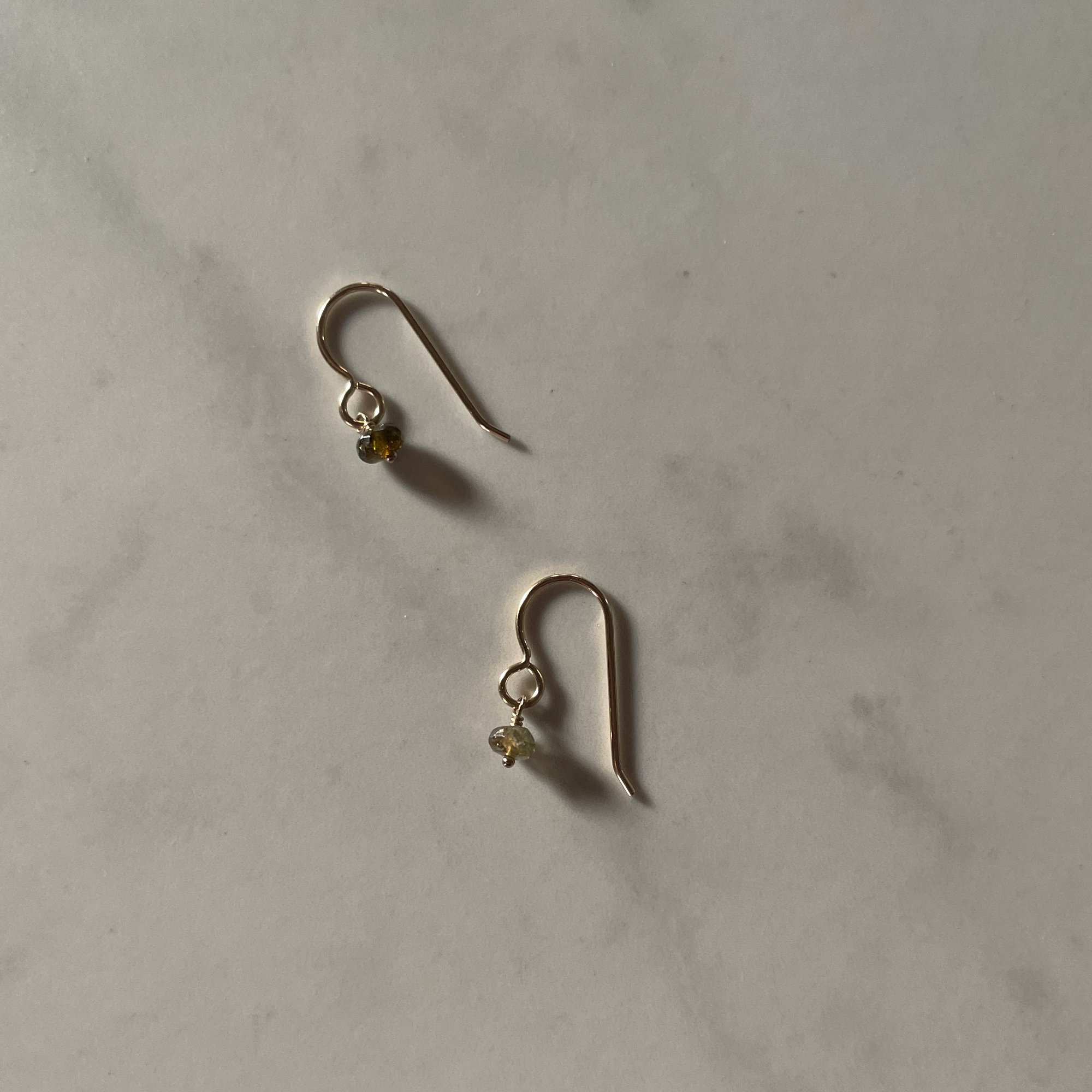 multi-tonal moss hued tourmaline on 14K gold filled earwires