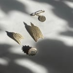 hand fabricated brass pin textured with handmade stamps, a nod to the winter solstice
