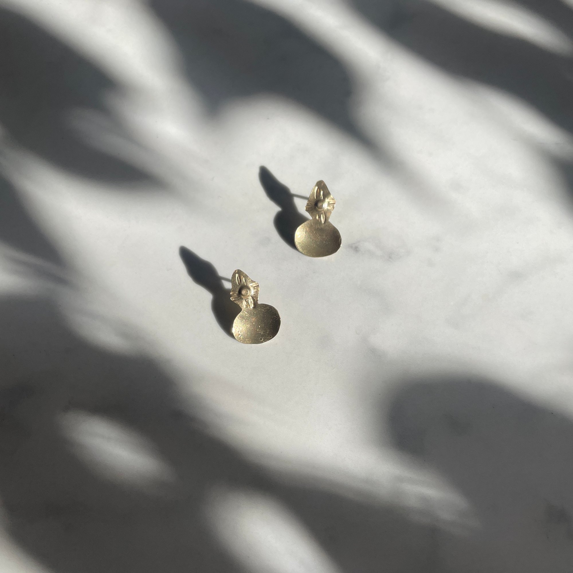 hand fabricated brass earrings textured with handmade stamps