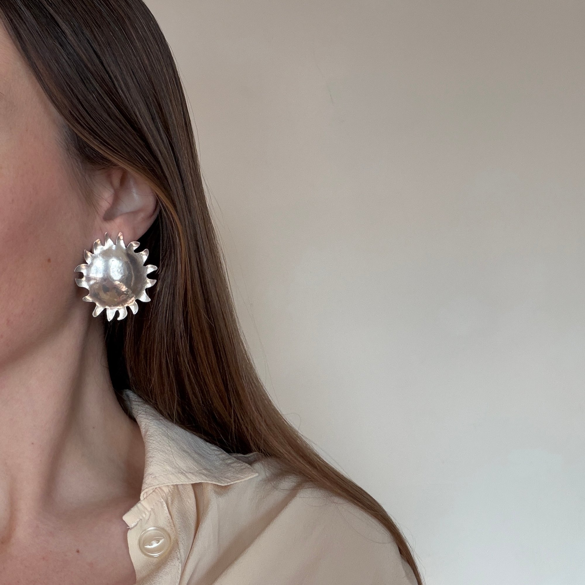 hand fabricated sterling silver earrings, a nod to the winter solstice